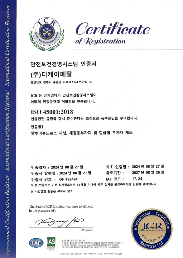안전보건경영시스템 인증서