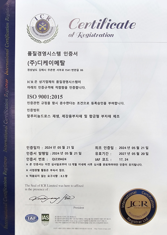 품질경영시스템 인증서